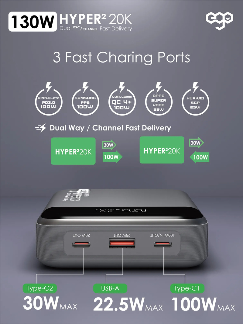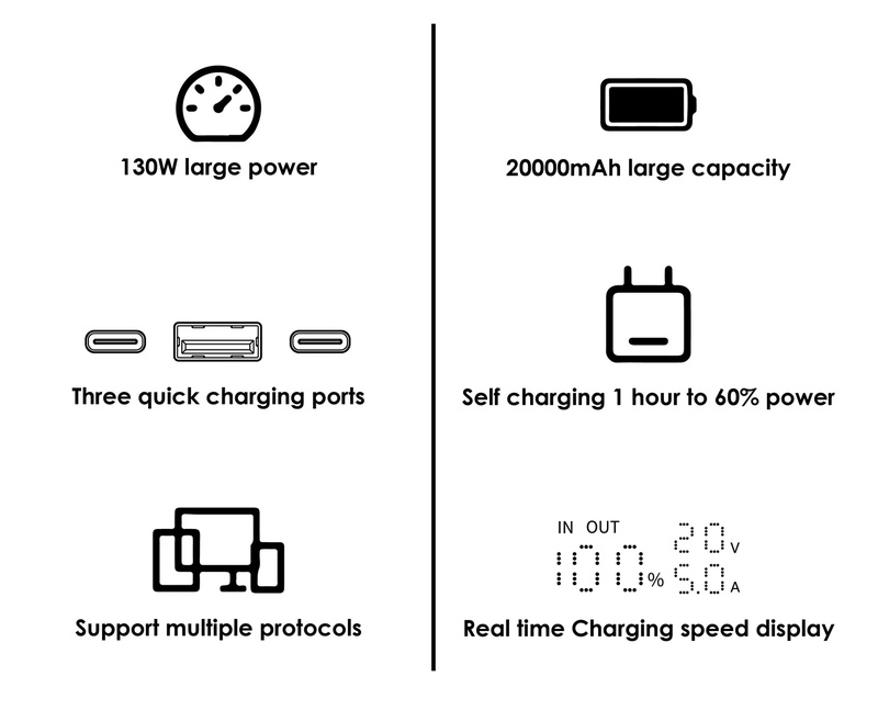 支援 100W PD/ 100W PPS / 22.5W SCP / 100W QC4+ / 18W QC3.0