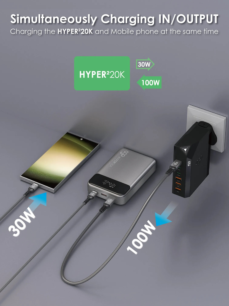 2. 支援一邊輸入100W ,一邊輸出快充30W