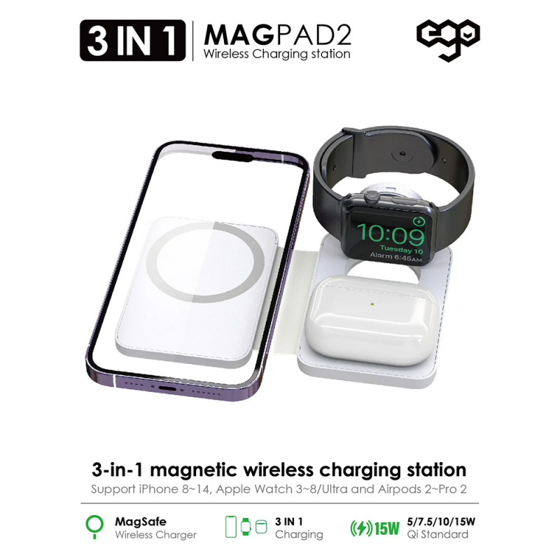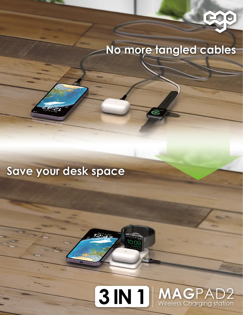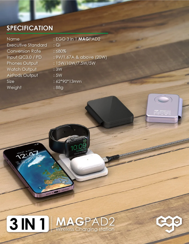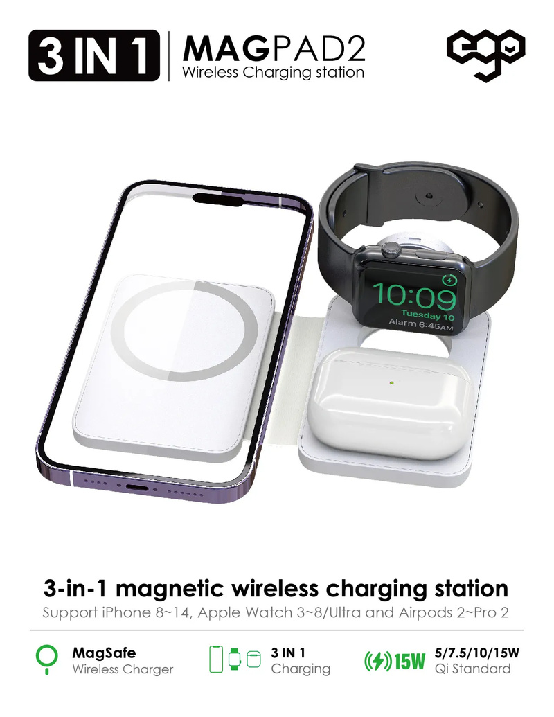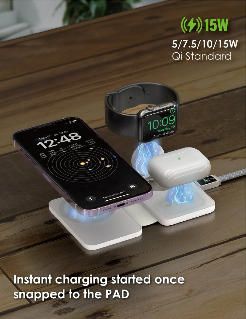 專為 APPLE 用戶而設,可為最新 Apple Watch 3 - 8,Ultra,Airpods 2 - 3 / Pro,iPhone 8 - 14 進行快速無線充電。