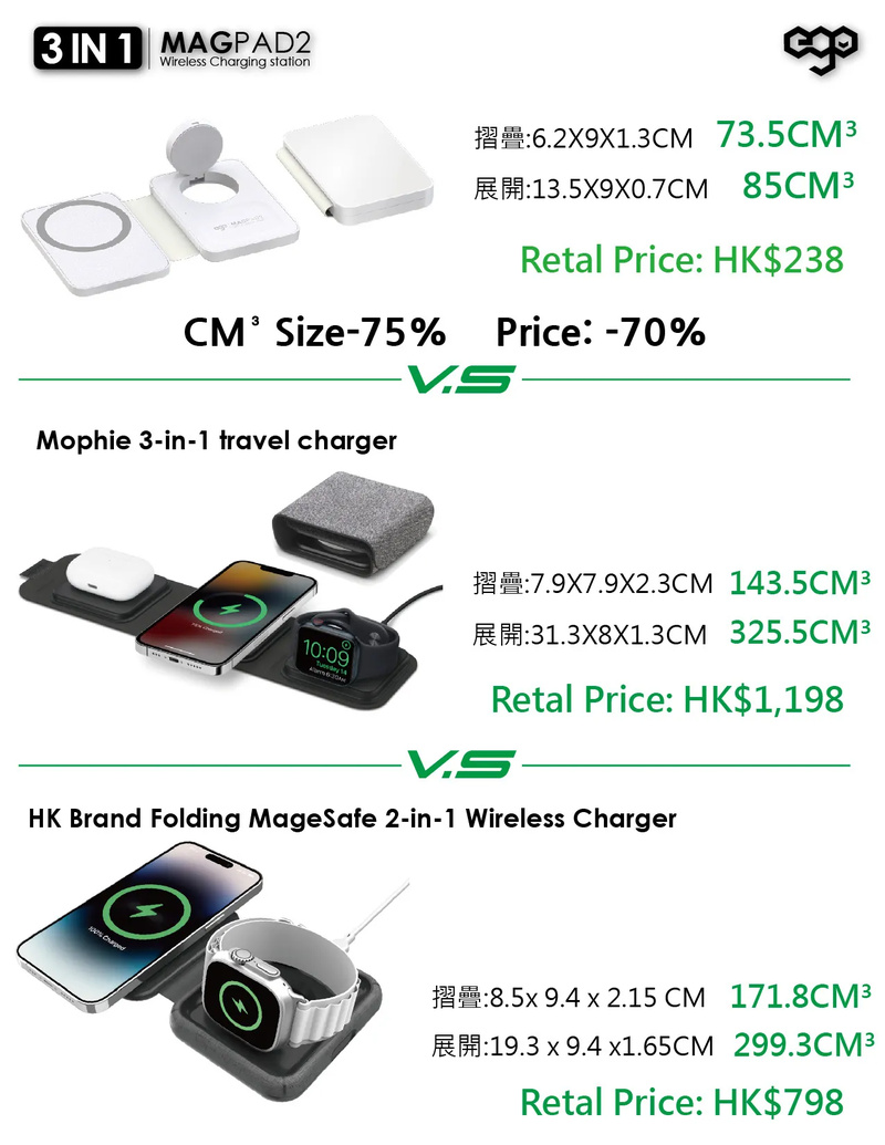 史上最細最薄最輕便 3 合 1 充電器
