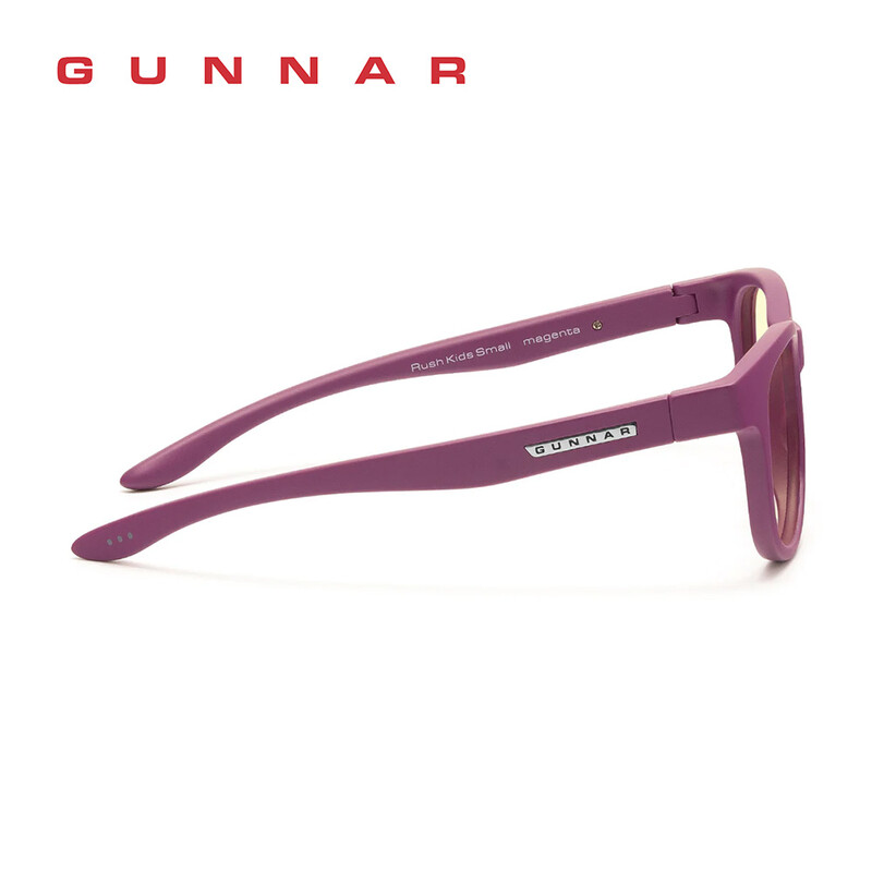 “Rush”,一款專為兒童和青少年設計的時尚型電腦眼鏡。 採用耐用的圓形尼龍鏡框、防污鏡片和 GUNNAR 專利鏡片技術元素,可阻擋藍光、減少眩光並有助於防止眼睛乾澀,在學校或家中使用數碼設備時,您的孩子的眼睛將得到更安全的保護。