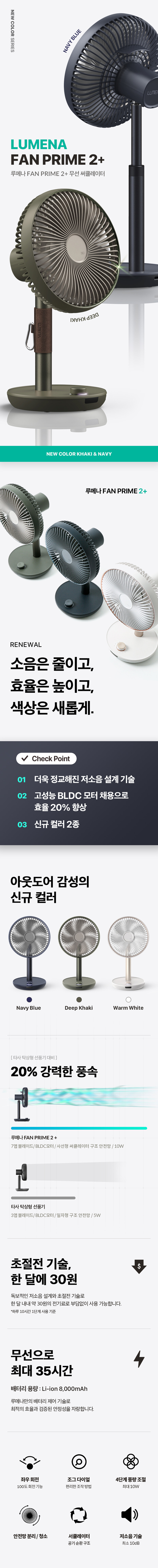 韓國設計品牌 Lumena,2022 年新型號 PRIME2 + 7 吋無線風扇,可自由高度調節 140mm 及 100 度大角度搖擺,把涼風送到每個角落,專有的氣流設計技術,無與倫比的性能和設計,創造了壓倒性的強大風力。