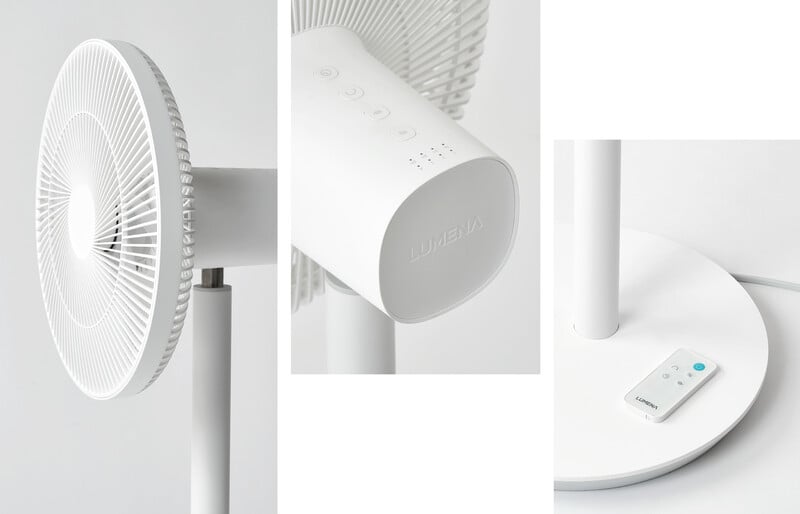 Lumena FAN PLUG 座地風扇,全新的 SLIM-EDGE FAN 設計,純白簡約,體積小巧,最大風力可達到 15W,獨特 7 扇葉設計,低噪技術,增加氣流以達致更強力的降溫效果, 左右自動旋轉 100°,可調節的廣角送風,最大風距範圍達 19 米,涼風均勻分佈房間各處。