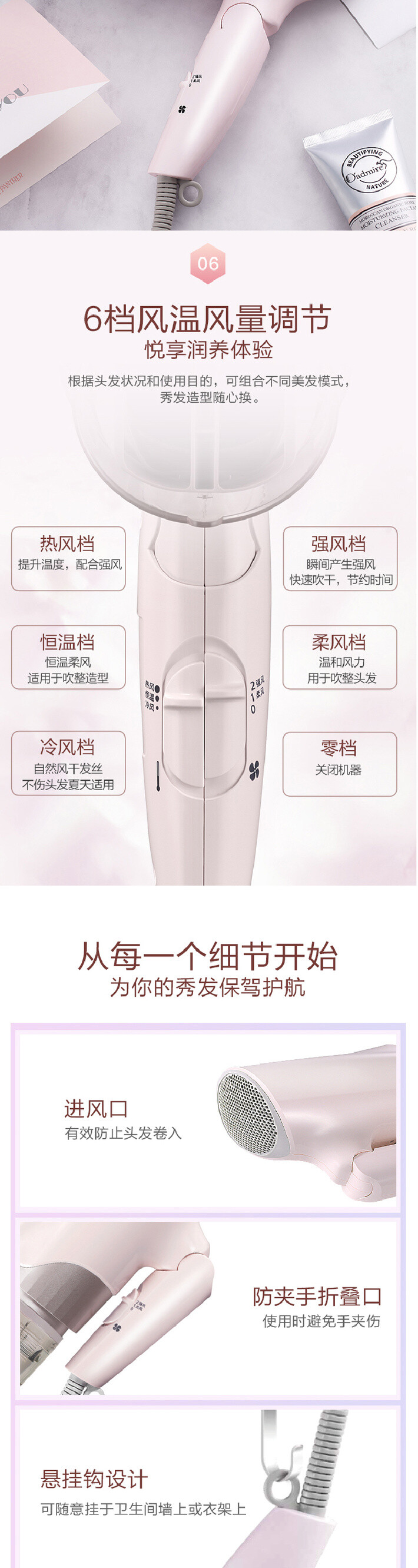 6 檔風溫風量調節,悅享潤養體驗