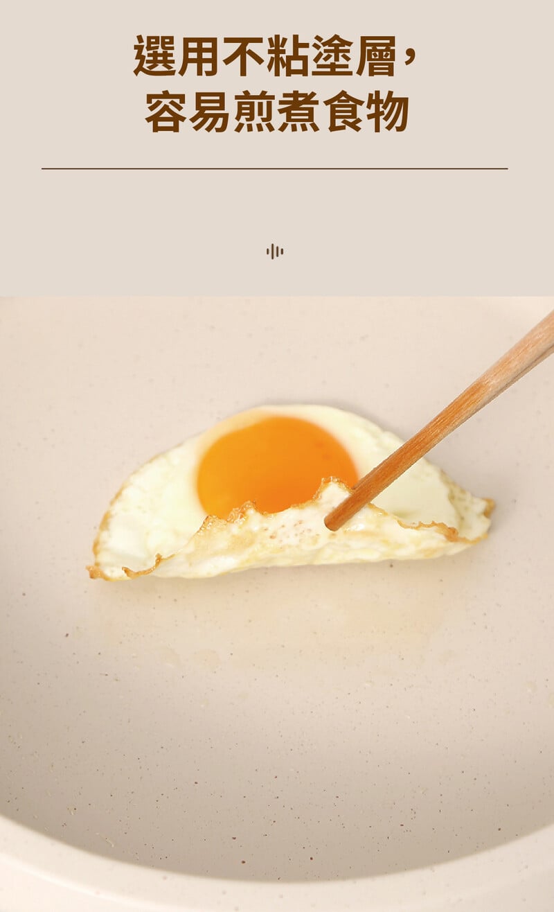 選用不粘塗層,容易煎煮食物