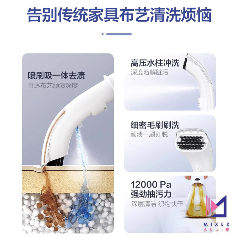 打造高壓噴水、強力刷脫、限風抽吸一體化的清潔系統,移動式洗淨沙發、地毯、窗簾等織物,便捷免拆洗。