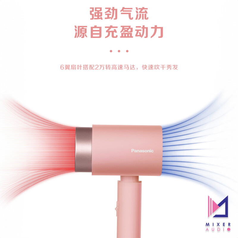 6翼扇葉搭配2萬轉高速馬達,快速吹乾秀髮