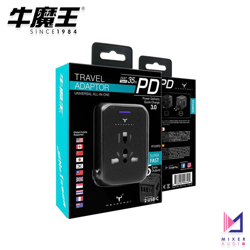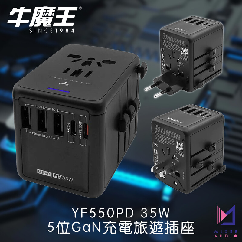 牛魔王 Maxpower YF550PD GaN USB Type-C 5 位充電旅遊插座,適合多國使用,包括美國、加拿大、日本及中國等地,讓您無論一身處何地都能享受快速充電體驗