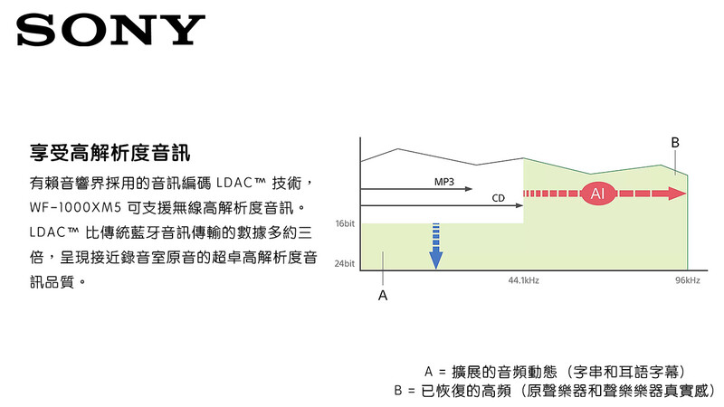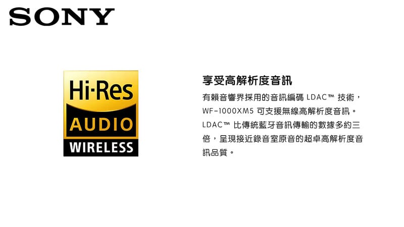 ・頻率響應(LDAC 96kHz取樣990 kbps):20Hz - 40,000Hz