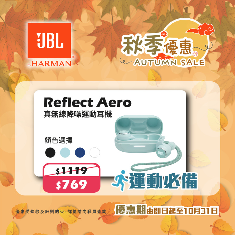 JBL Reflect Aero 耳機使用 POWERFINS 設計,提供牢固和更貼合的 Oval TubesTM 橢圓球帶來全天候舒適,是您積極生活的最佳夥伴。運用真自適應降噪功能,專注於您的目標,而智慧環境技術則可讓您隨時對周遭環境保持警覺。無論您是要出去享受輕鬆步行或認真健身,24 小時快速充電電池容量都讓您不會錯過由豐富的 JBL 經典音效所驅動的個人配樂。當需要通話時,每個 IP68 防塵防水耳機上的 3 個麥克風有助於確保完美通話,無論您身在何處。
