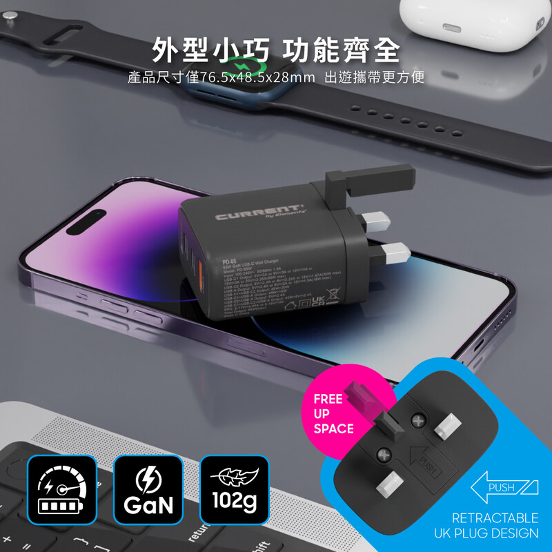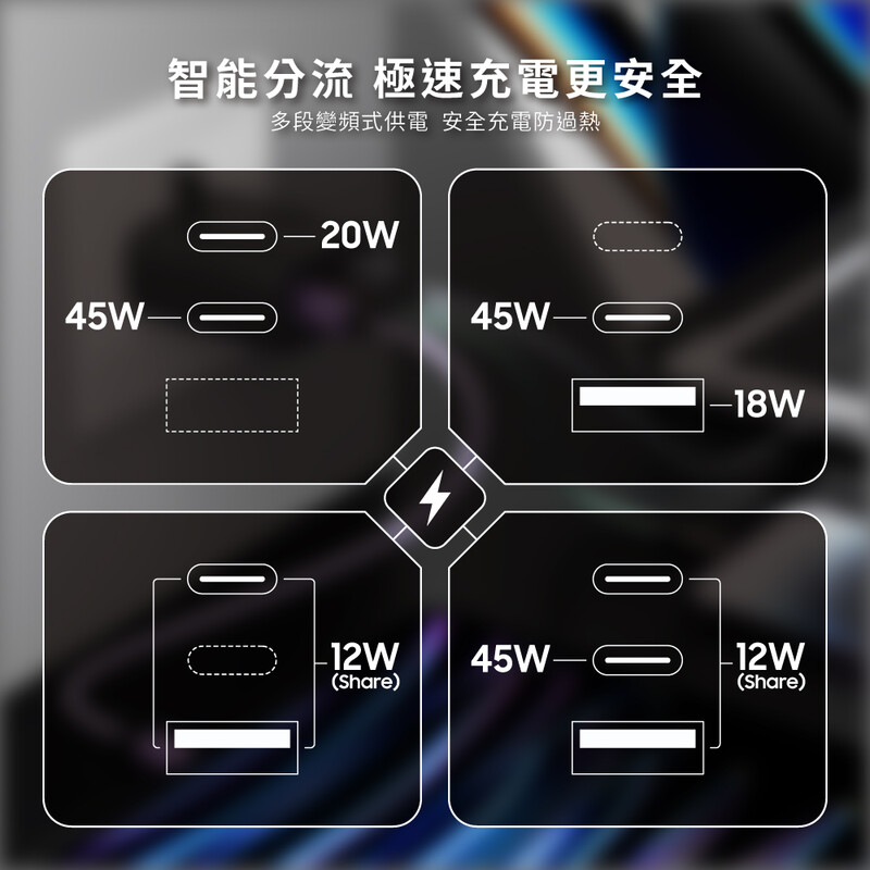 配備 2個 TYPE-C 20W / 45W 及 1個 USB-A 18W