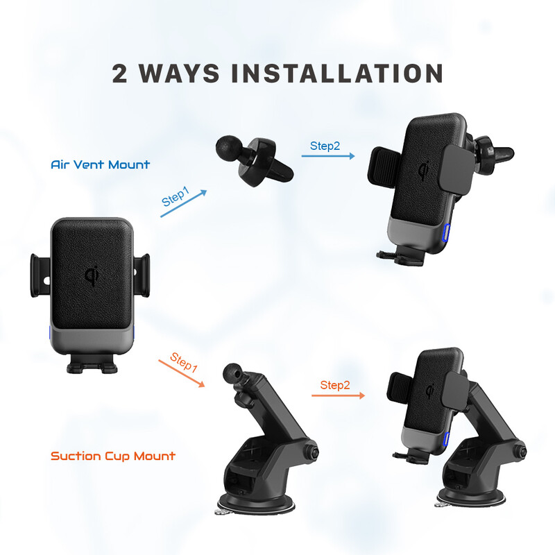 兩種模式:出風口夾裝式;固定部位吸盤式