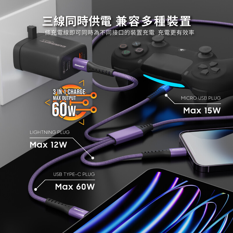 ・MIRCO 15W + LIGHTNING 12W + TYPE-C 60W MAX
