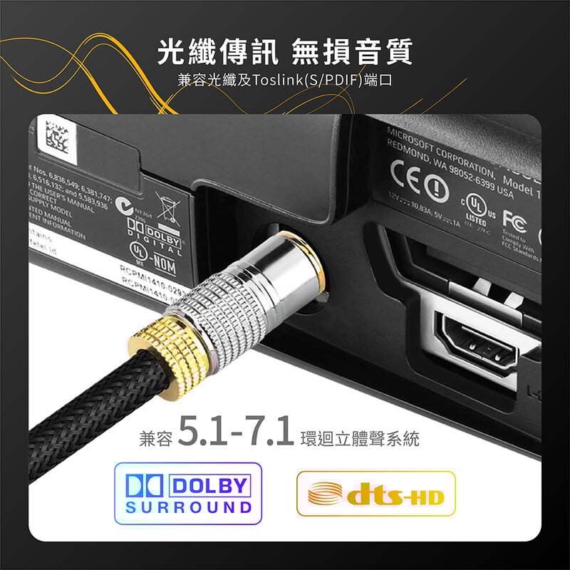 ・使用光纖 及 Toslink (S/PDIF) 端口