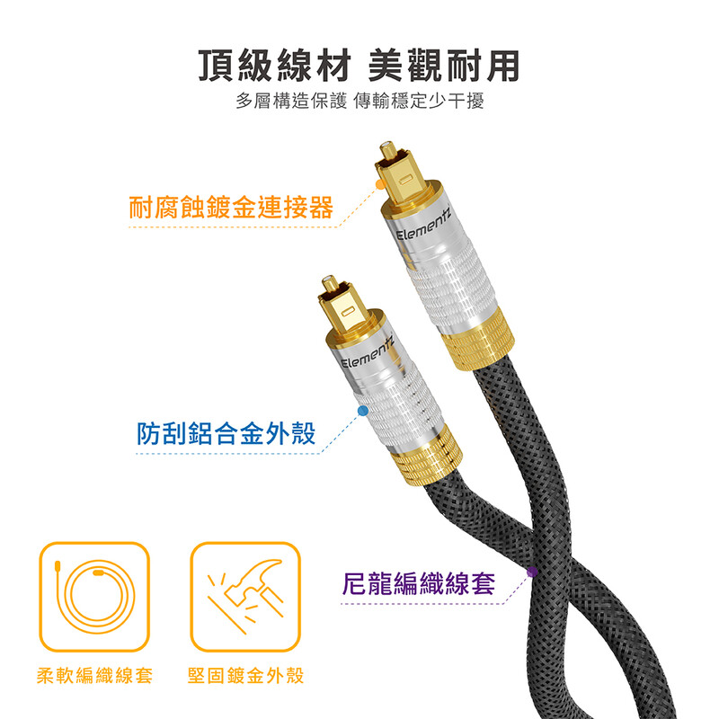 【原裝行貨 一年保養】Elementz OP (24K Smooth Optical Audio Cable) 24K 數碼光纖音源線