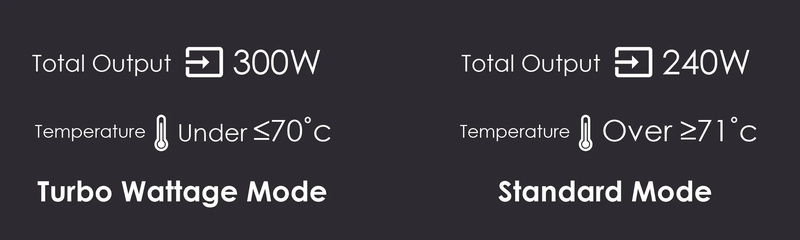 ・Turbo mode Output:300W (Chipset run below 70°C)