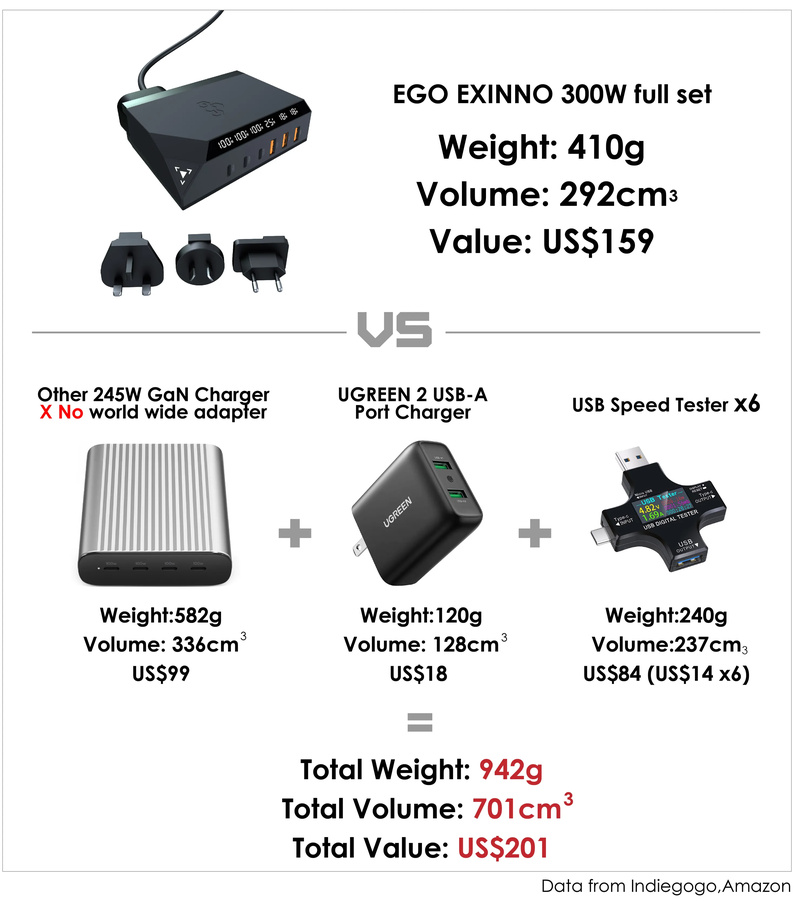 300W 主機 + 3 轉換插頭 + 延長線 全套