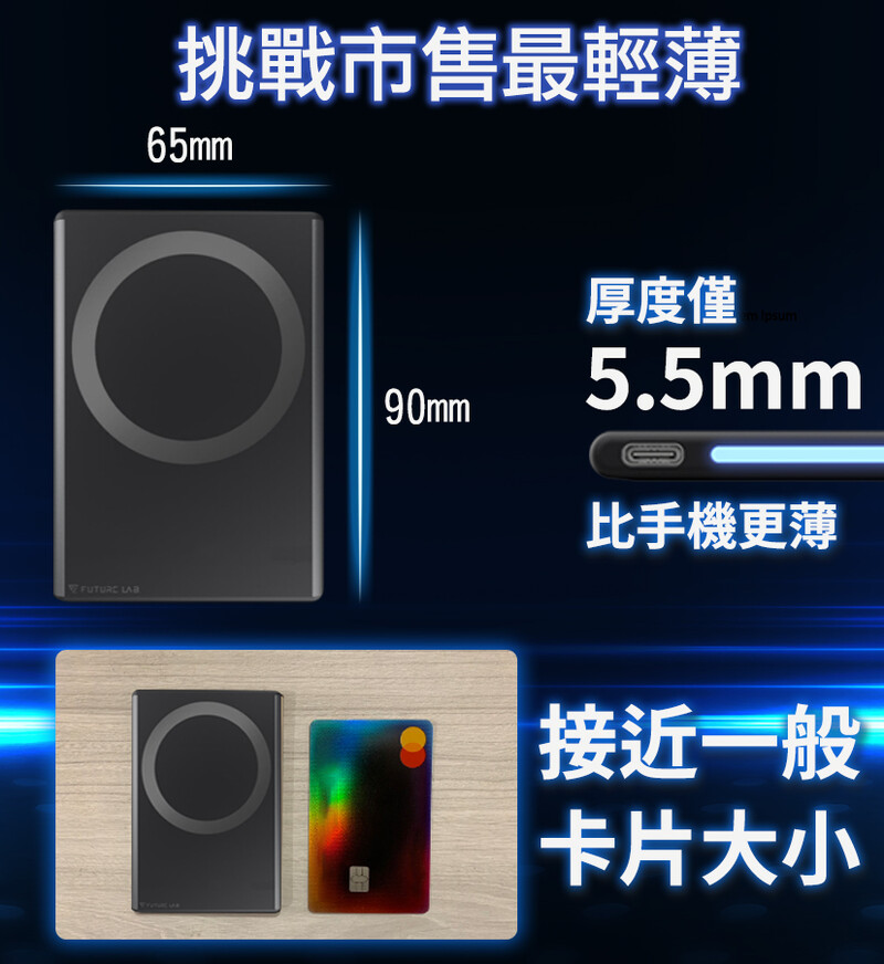 厚度僅 5.5mm,比手機更薄,接近一般卡片大小。