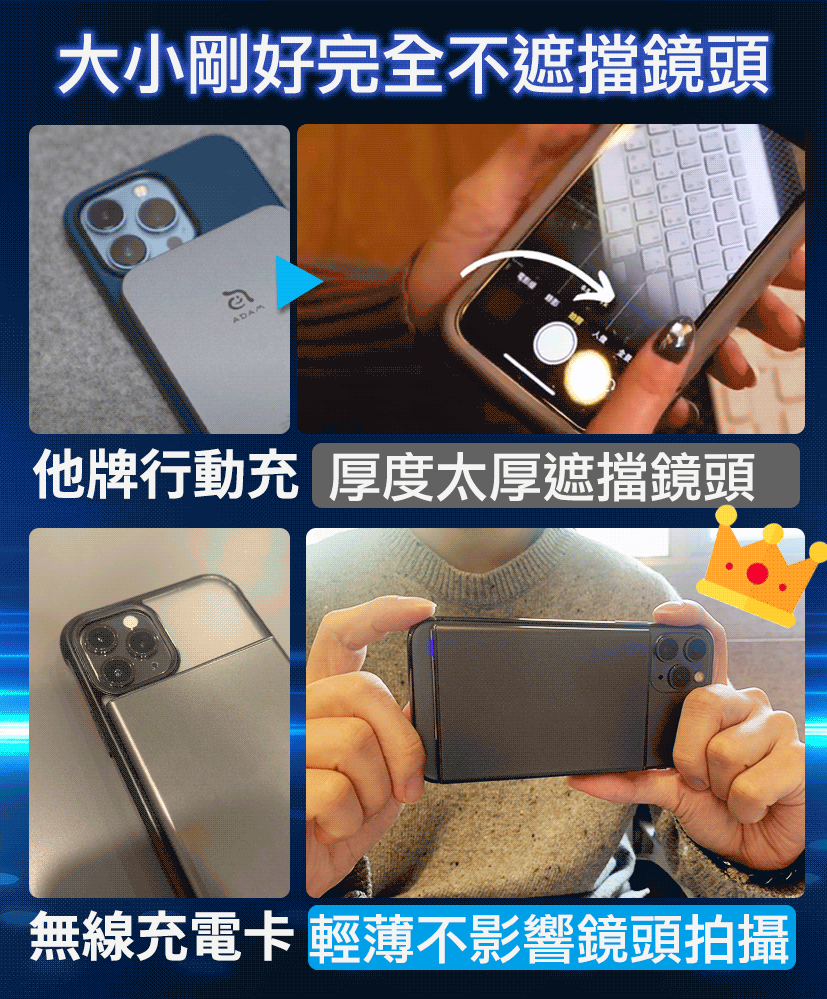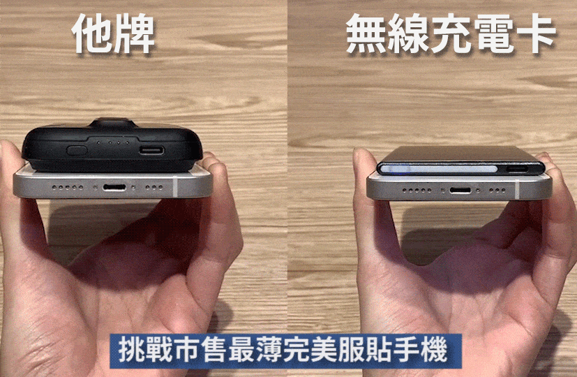 他牌行動充電池厚度太厚遮擋鏡頭,MagnaS Energy Card 磁吸電源卡輕薄不影響鏡頭拍攝。