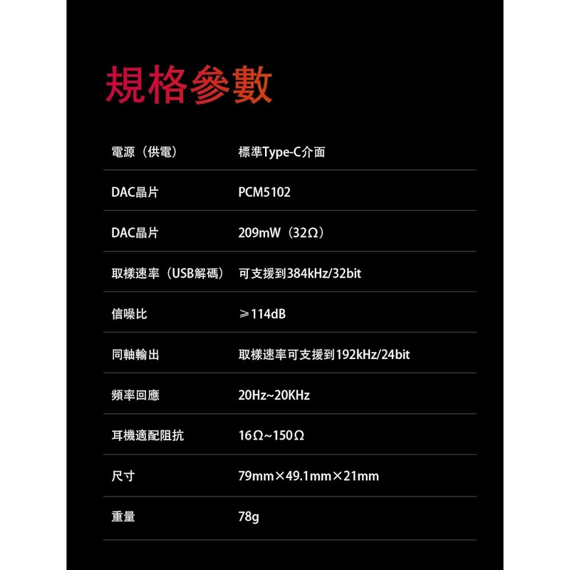 採用Type-C介面,相容性更廣泛,支援耳機輸出、同軸輸出、線路輸出,同軸輸出取樣速率提升至192kHz/24bit,輕鬆適配更多的音訊設備。