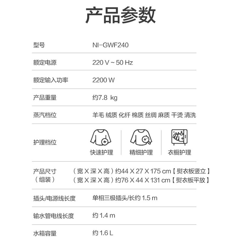 ・護理檔位:快速護理 / 精細護理 / 衣櫥護理