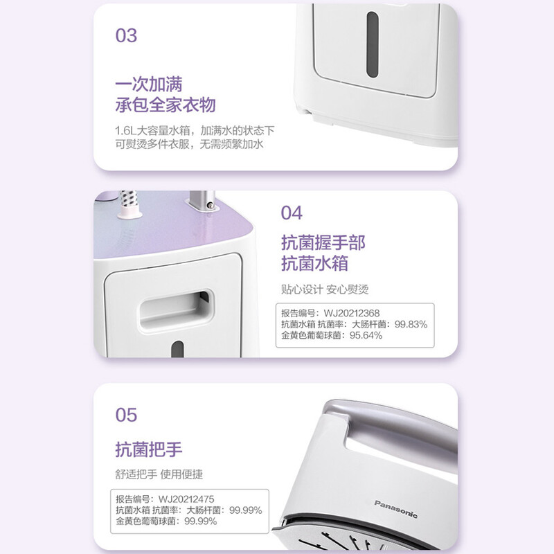 貼心設計、安心熨燙。大腸桿菌抗菌率:99.83%;金黃色葡萄球菌抗菌率:95.64%