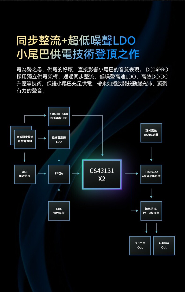 雙 CS43131 旗艦DAC 超低雜訊 LDO,確保電源純淨