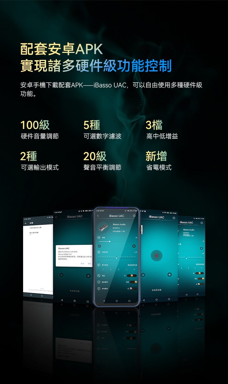 安卓手機下載配套APK - iBasso UAC,可以自由使用多種硬體級功能。