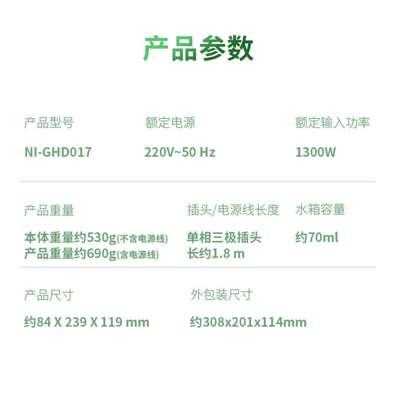 ・額定輸入功率:1300W
