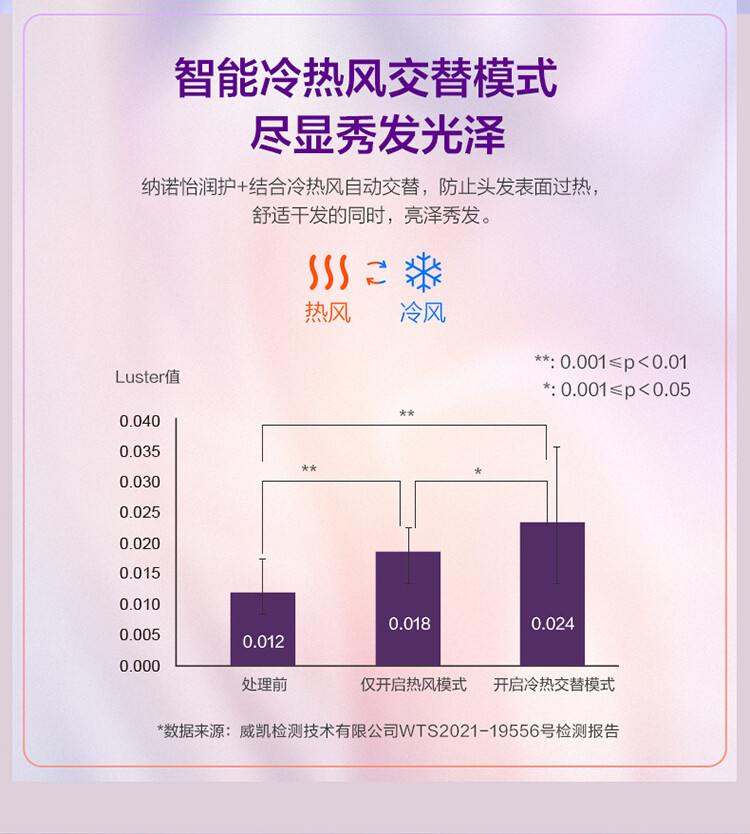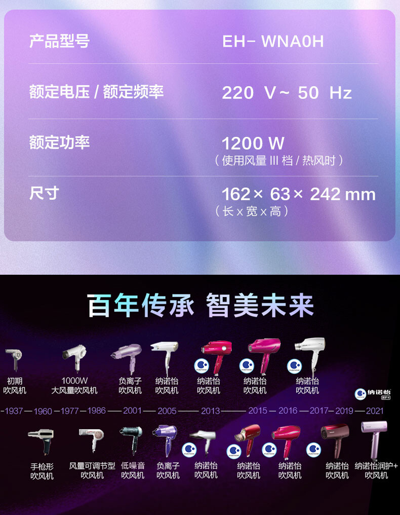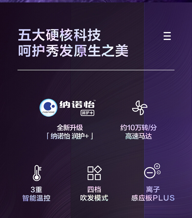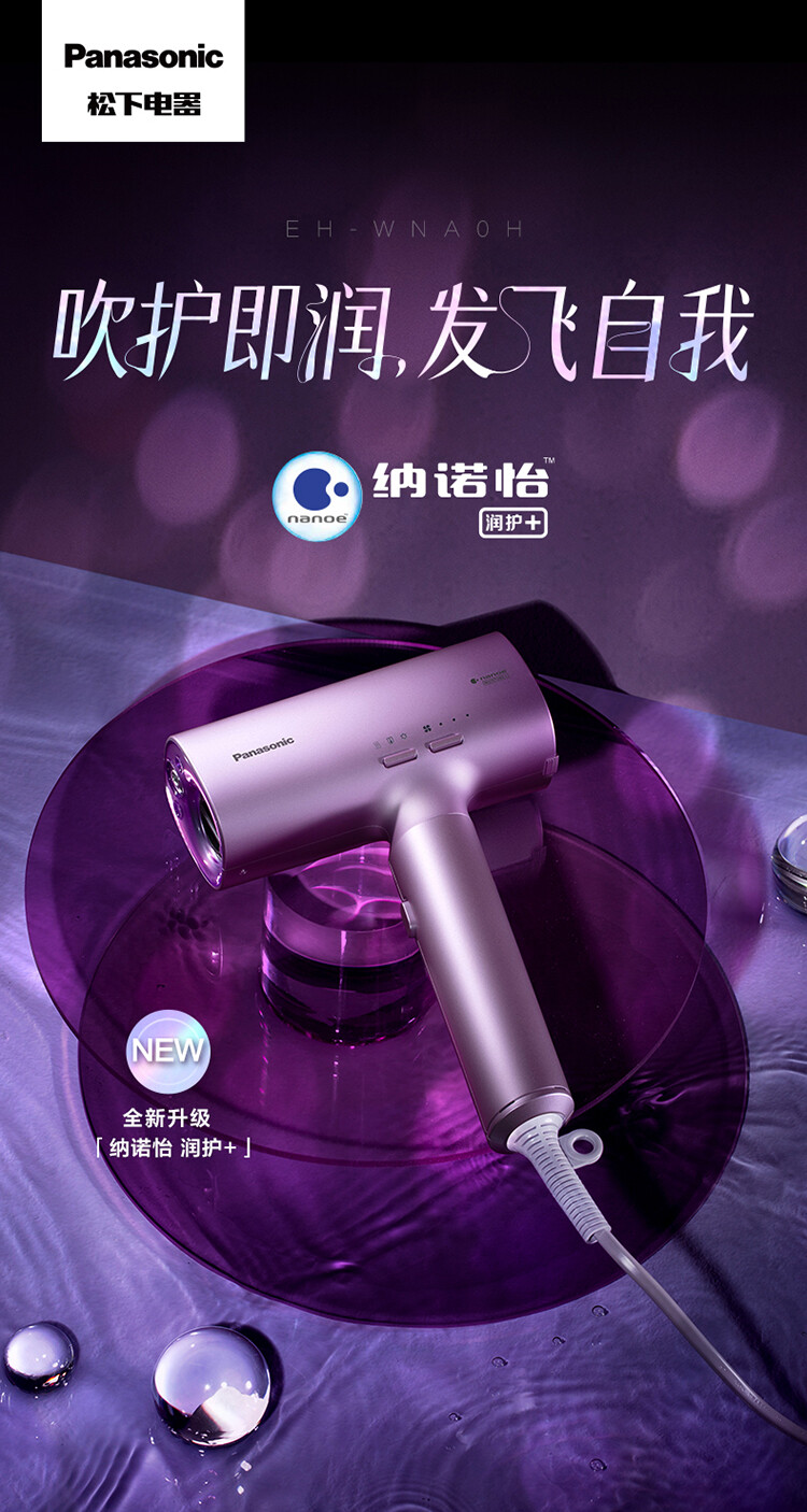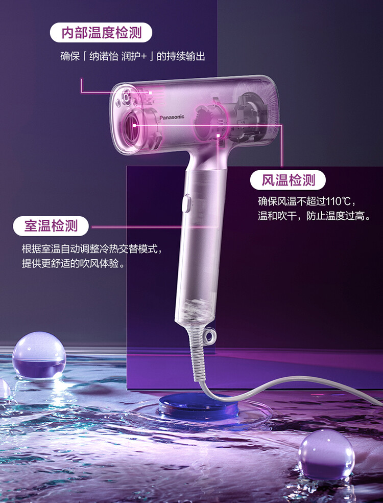 「納諾怡 潤護+」結合冷熱風自動交替,防止頭髮表面過熱,舒適乾髮的同時,亮澤秀發。