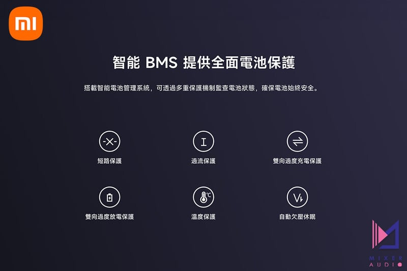 搭載智能電池管理系統,可透過多重保護機制監查電池狀態,確保電池始終安全: