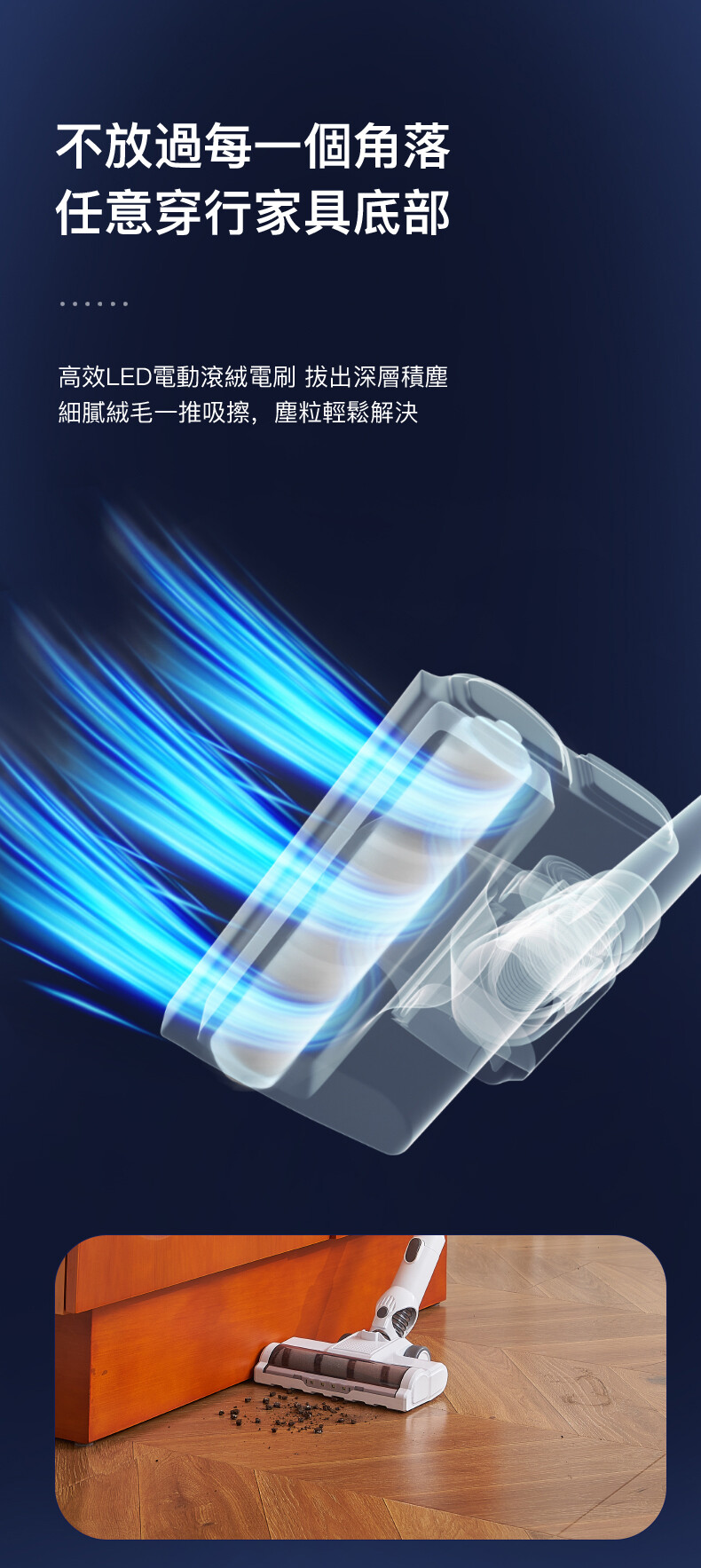 ・附有鋁管,LED 電動滾絨地刷等不同配件,滿足多種場景清潔需求