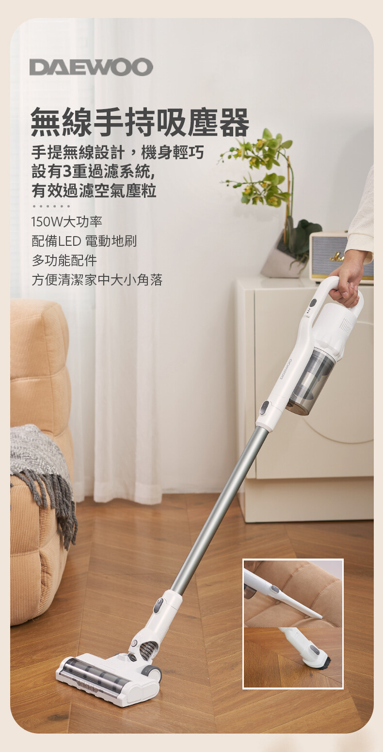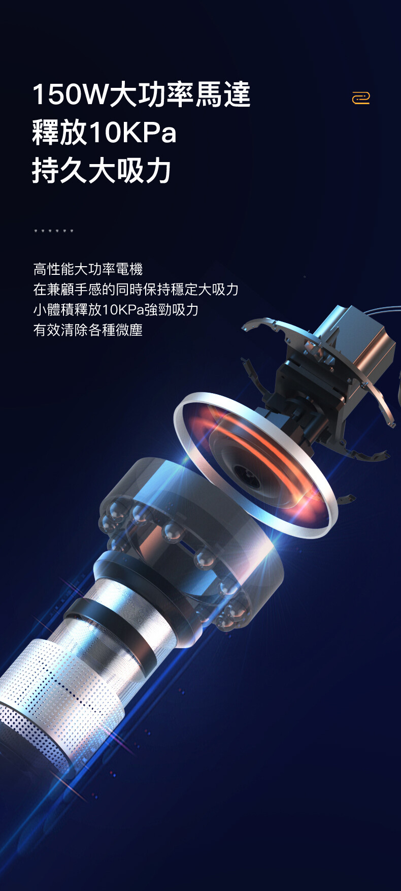 ・150W 大功率,吸力最高可達 10kpa,高效清潔