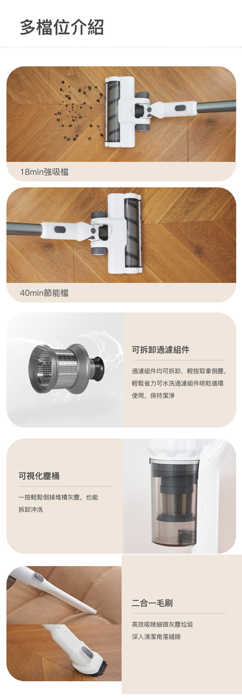 ・不需塵袋,易拆式可用水清洗設計,方便清潔及日常保存