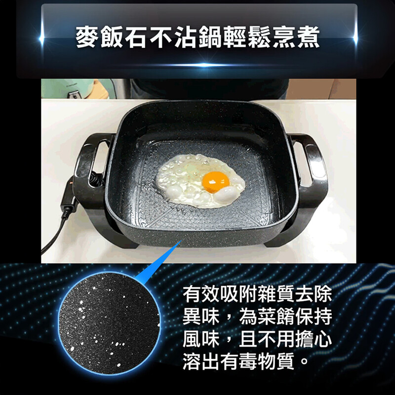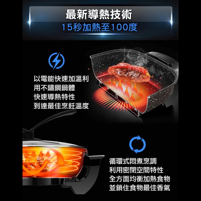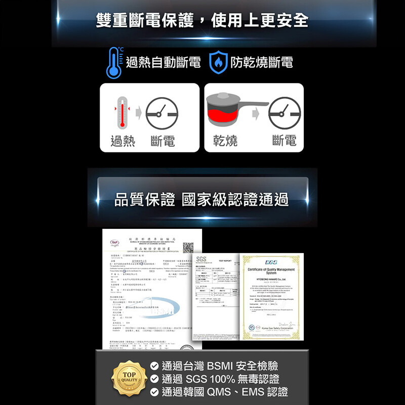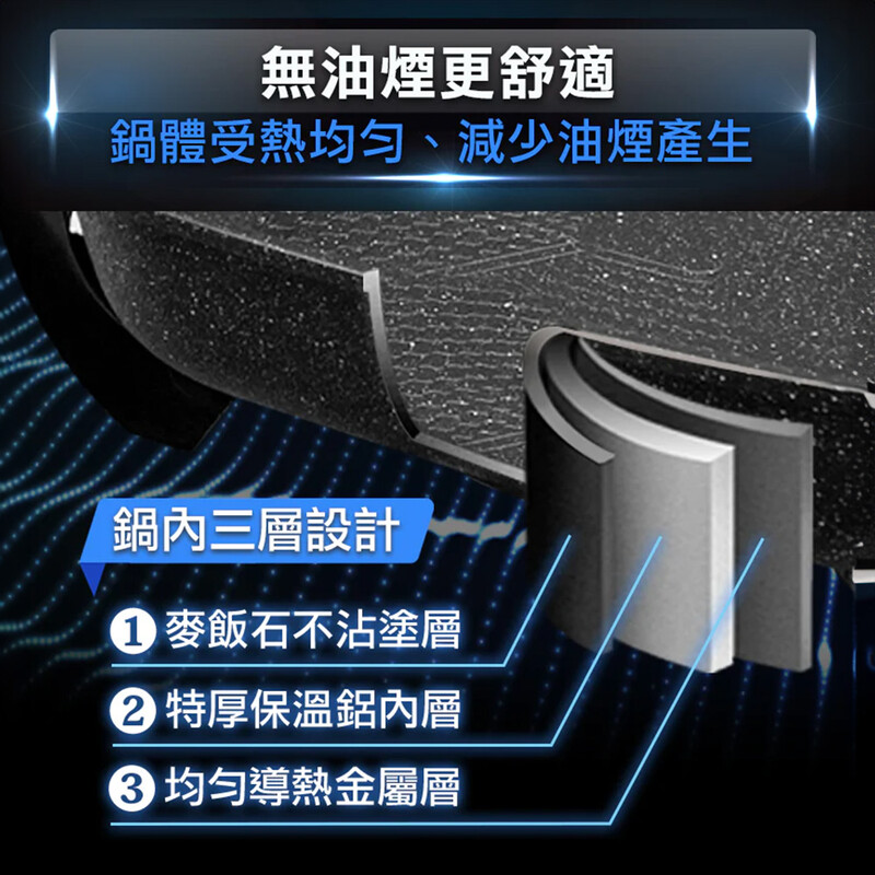 ・鍋體材質:1. 麥飯石不沾塗層 2. 特厚保溫鋁內層 3. 均勻導熱金屬層(鋁合金)