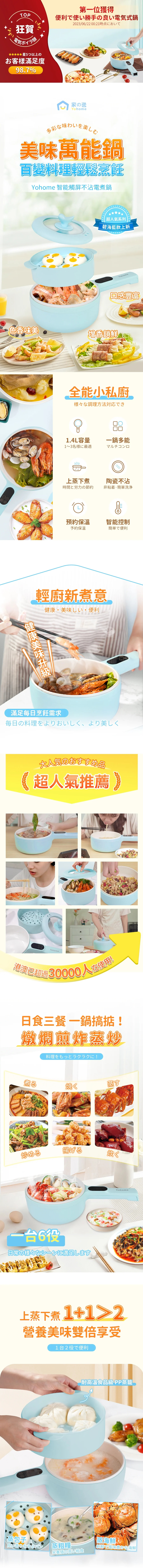 1.4L 內鍋另配備蒸籠,一人必備不沾鍋,更方便、更省事。