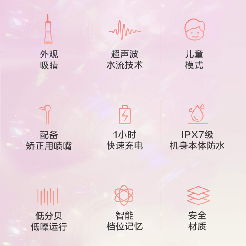 透過超音波技術所產生的細密氣泡水流,強力沖刷牙齒表面和齒縫間的食物殘渣;同時還能舒適按摩牙齦,呵護牙齦健康。