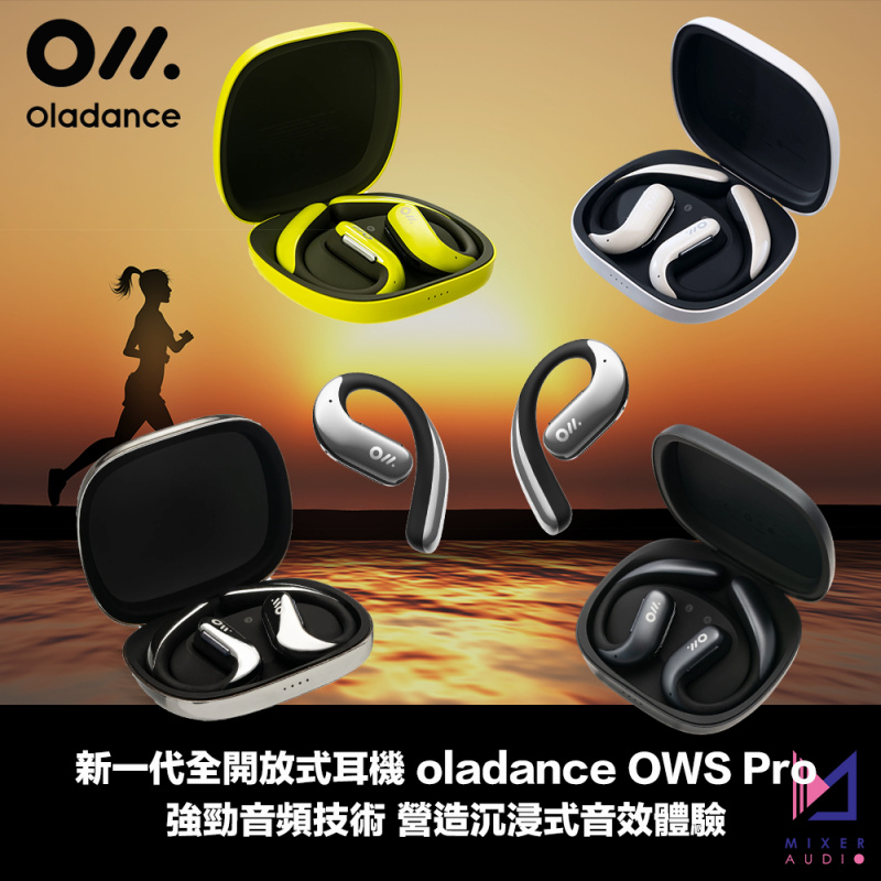 oladance OWS Pro 全開放式耳機融入莫比烏斯環 (mobius design) 幾何形狀概念,利用柔性鈦絲記憶耳掛和寬闊支撐面,打造出獨家的「三點一弧」掛耳式設計,符合人體工學支撐結構,有助分散受力及提高佩戴的穩定性,即使進行激烈的運動期間也不易鬆脫。三點一 弧設計更令耳機能達到零擠壓、零堵塞的佩戴效果,而耳機的貼耳部分選用 100% 還原肌膚觸感的醫用級液態硅膠製成,解決長時間佩戴耳機所造成的不適問題。此外,全開放設計亦令用家可以感知周圍環境的變化,即使戴著耳機街跑或單車訓練,也能在聆聽高質素音樂之餘而不失安全性。OWS Pro 支援 IPX4 級防水效能,戶外運動時便毋懼汗流及雨水潑濺。