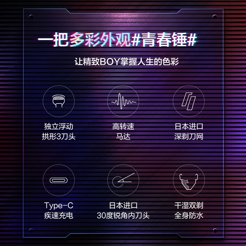 高轉速馬達,每分鐘約8千轉高速剃鬚。 帶來強勁動力,幾十秒搞定剃鬚。