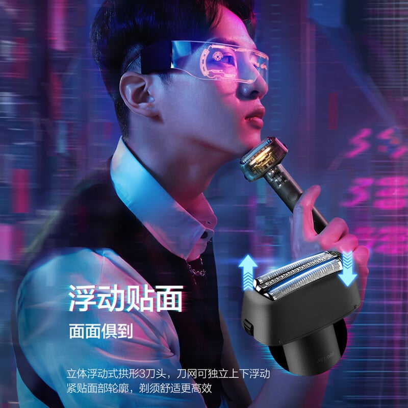 立體浮動拱形3刀頭,刀網可獨立上下浮動,緊貼臉部輪廓,剃鬚舒適更有效率。