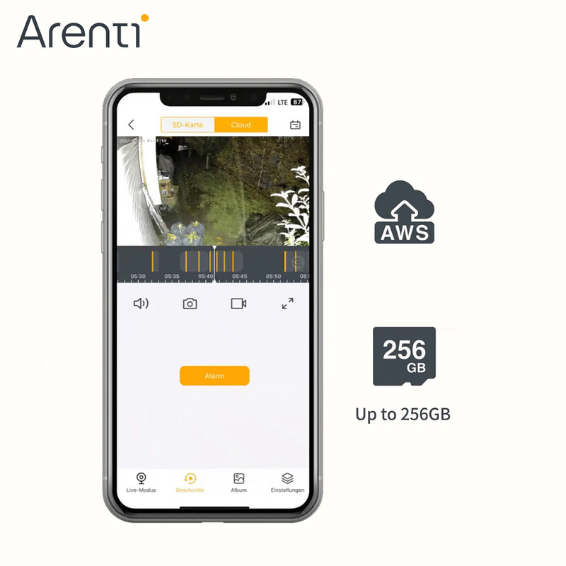 Arenti OP1 提供靈活的儲存選項來滿足您的需求。支援最大 256GB 的記憶卡,此外還具有雲端加密網路儲存空間,您可以免費試用 3 個月。試用後,您可以選擇按月、按季或按年付款計劃。