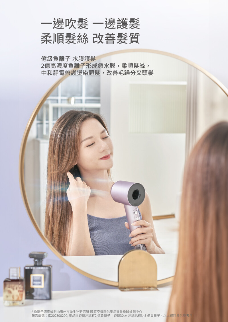 ・億級高濃度負離子,中和靜電、撫平毛躁