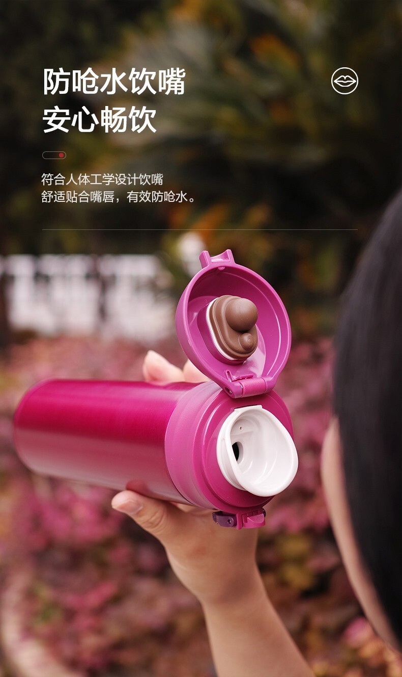 符合人體工學設計飲嘴舒適貼合嘴唇,有效防嗆水。