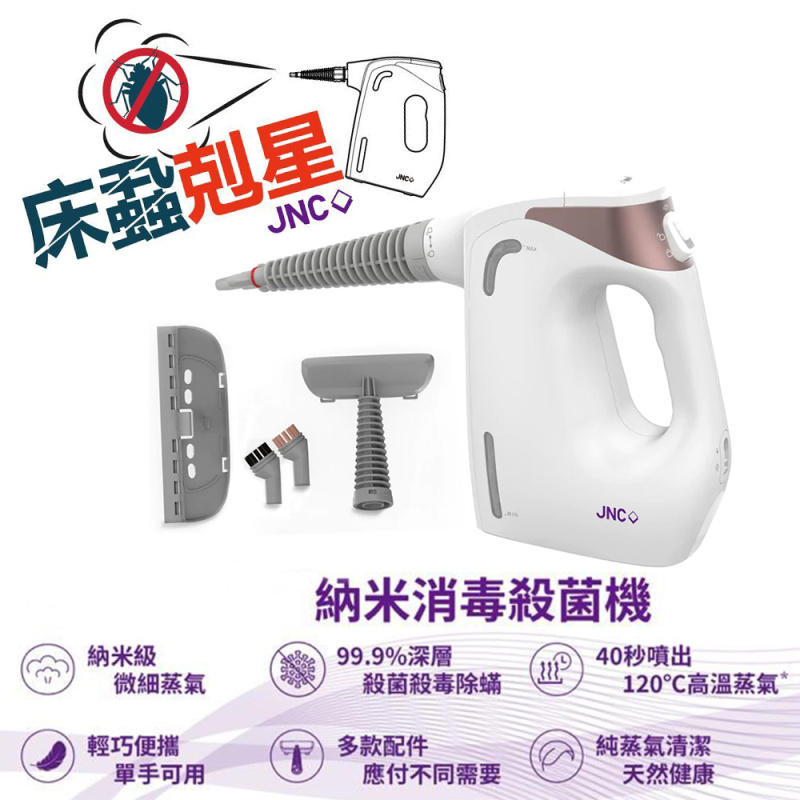 120度高溫納米蒸氣配合負離子,清潔同時殺滅 99.99% 病毒、致敏源及細菌