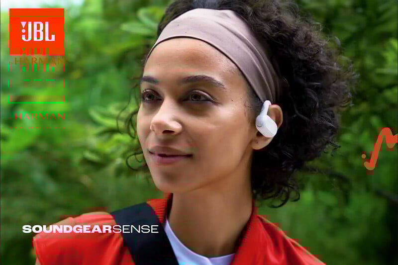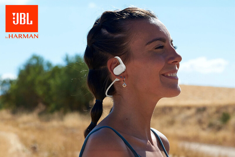 JBL Soundgear Sense 耳機具有 IP54 防塵和防濺等級。因此,在多塵小徑上風吹或快速的夏季淋浴,甚至不會拖慢您的速度。