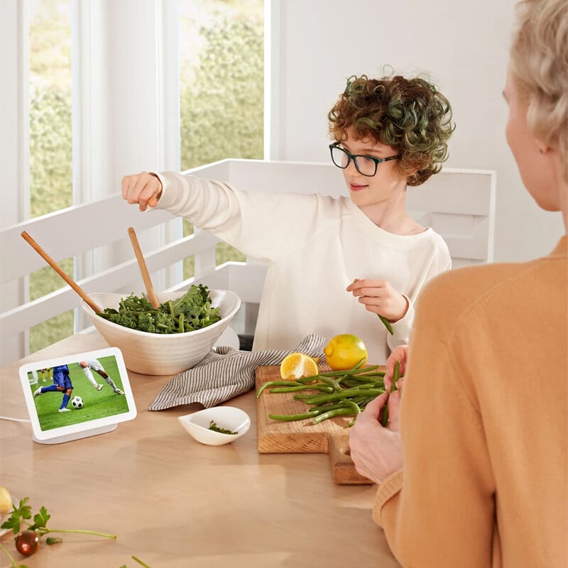將 Chromecast 與 Nest 揚聲器或顯示器組合在一起,讓您的家充滿聲音。 然後使用應用程式或僅用您的聲音來控制它們。