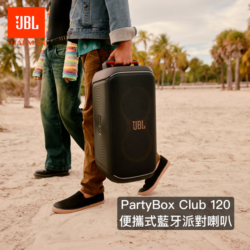 JBL PartyBox Club 120 可將任何地方變成派對現場並充滿音樂氛圍。強勁的 JBL Pro Sound 音效環繞周圍,同時星光、酷炫的光線軌跡和閃光效果的迷人燈光秀與您的節奏同步。