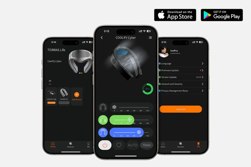 下載「TORRAS」應用程式以獲得完整個人化體驗。輕鬆設定不同的模式並根據喜好調整等級。自動模式更進一步,可以自動適應任何情況,保持理想溫度。