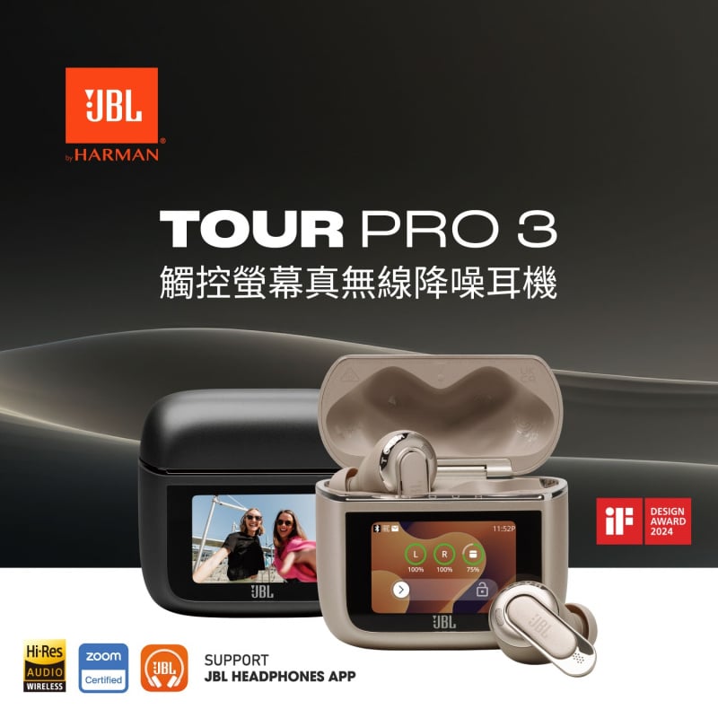 JBL Tour Pro 3每個耳機中配有雙驅動單元。平衡電樞驅動單元以迷人的清晰度處理高音,而10mm動態驅動單元則提供清晰、強大的低音和生動、逼真的人聲。它們還通過LDAC提供無線Hi-Res認證音頻,這是Android的原生24位高分辨率音頻編解碼器,比藍牙傳輸三倍數據,提供卓越音質。