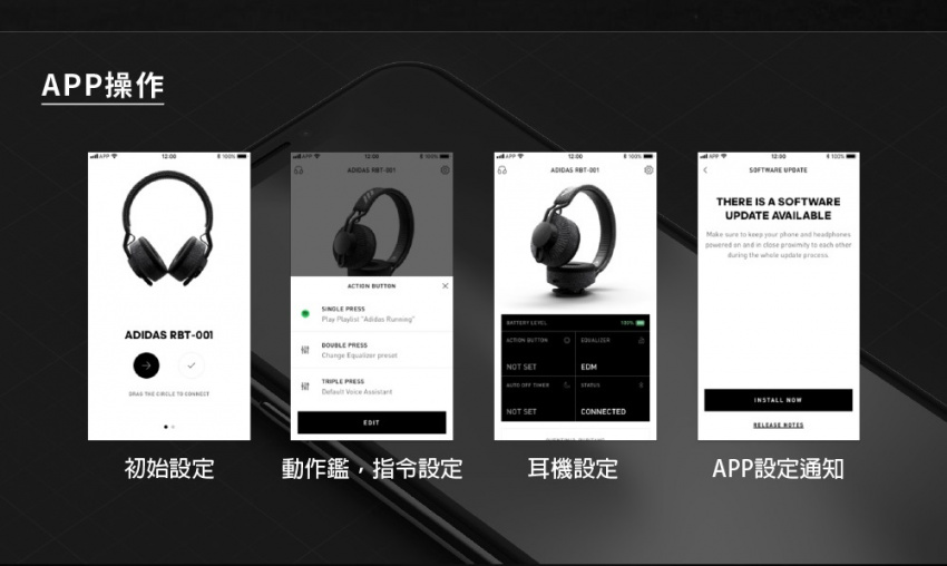 • 動作鍵:透過APP設定三個快捷動作鍵